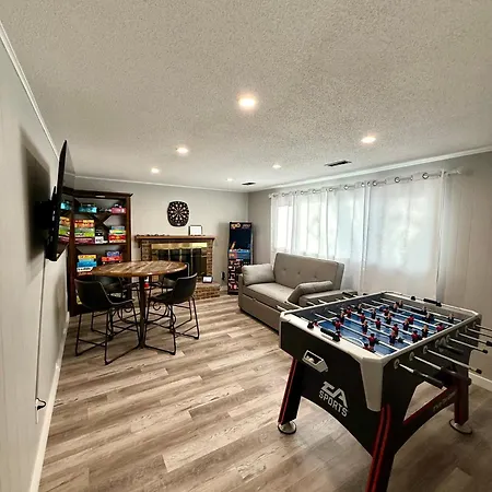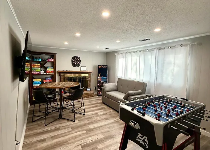 Los huéspedes de la Spacious 4 Bdr W/ Game Room 5 Min Drive To College pueden disfrutar de un balcón y una zona de estar, junto con instalaciones multimedia como TV de pantalla plana con canales vía satélite. Además de sofá, el interior presenta chimenea de piedra. Los cuartos de baño disponen de inodoro separado, bañera y ducha, secador de pelo y toallas.